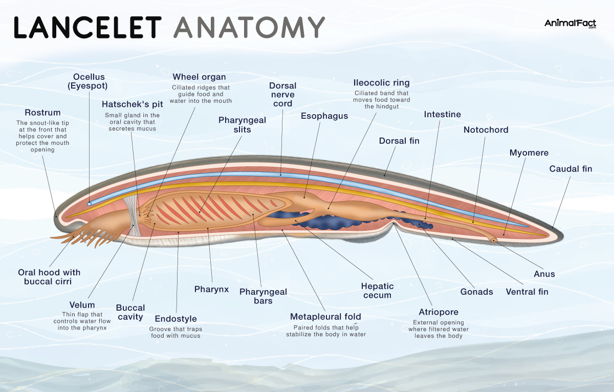 Lancelets were traditionally regarded as the sister group to vertebrates, and together, these two groups were considered the sister group to the Tunicata (also known as Urochordata). However, lancelets and tunicates exhibit significant differences in shape and the location of their notochord. Lancelets have a fish-like appearance with a notochord that extends from head to tail. In contrast, most tunicates are barrel-shaped and have notochords only in the tails of their larvae.